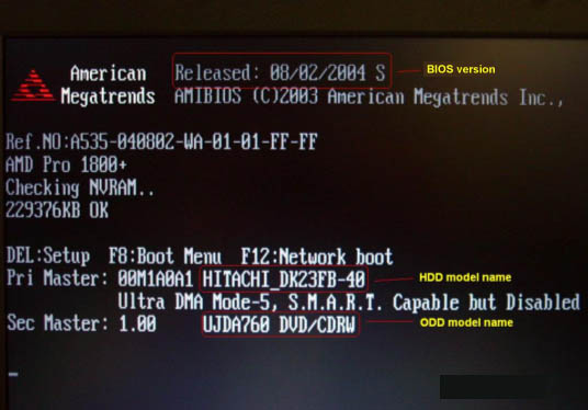 1. On POST ( Power On Self Test ) screen. Press "Pause" to freeze the screen and read the BIOS version as shown below.