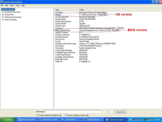 Start/All Programs/Accessories/System Tools/System Information